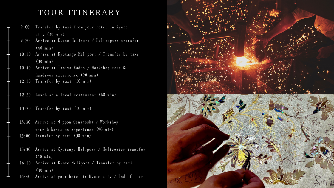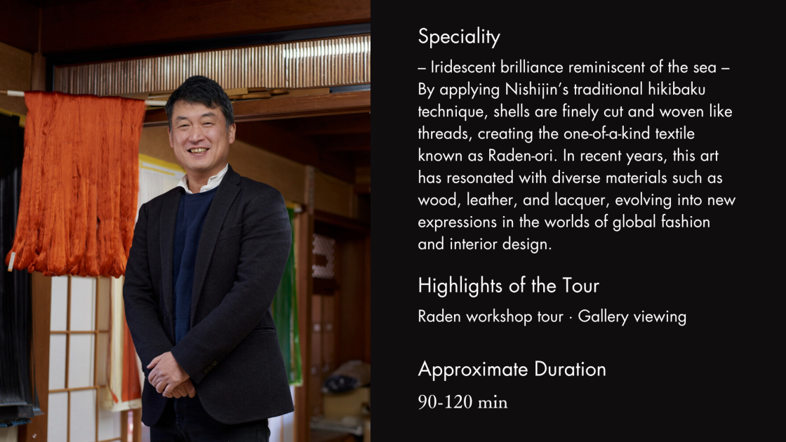 Special Souvenir: Take home an exclusive Raden craft item available only on this tour. Its brilliance will forever preserve the memory of this moment.