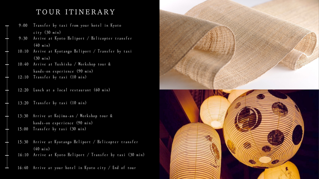 - Round-trip helicopter fare between Kyoto and Kyotango